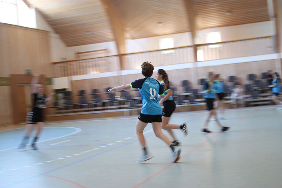 Am besten lassen sich die ersten zehn Minuten mit dem Wort „holprig“ beschreiben. Lediglich das Zusammenspiel zwischen der frisch genesenen, auf Halblinks spielenden Liese und der von Linksaußen einlaufenden und dann werfenden Jasmina war ein Lichtblick in dieser Phase. Die ersten beiden Würfe gingen erst einmal an den Pfosten. Könnte das an der falschen Ballgröße gelegen haben? Danach traf Jasmina aber sicher. Diese Aktionen machten allen Mut. Im Angriff konnte jetzt beobachtet werden, dass sich die Mädchen mehr trauten. Durch die sehr offensive Deckung war v.a. der Mut gefragt, sich durch Finten eine gute Wurfposition zu erarbeiten. Das gelang im Verlauf des Spiels fast allen Spielerinnen. Der Ball fand endlich seinen Weg ins Tor. Aber auch das Stoßen in die Lücke, das dadurch herbeigeführte Binden von zwei Abwehrspielerinnen und das anschließende Ablegen des Balles zur Nebenspielerin führten mehrfach zum Torerfolg. Liska und Pauline konnten so gemeinsam zwei Tore erzielen.